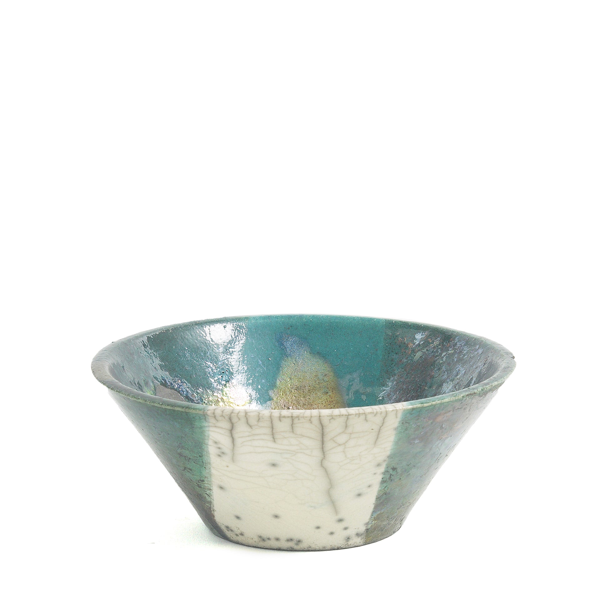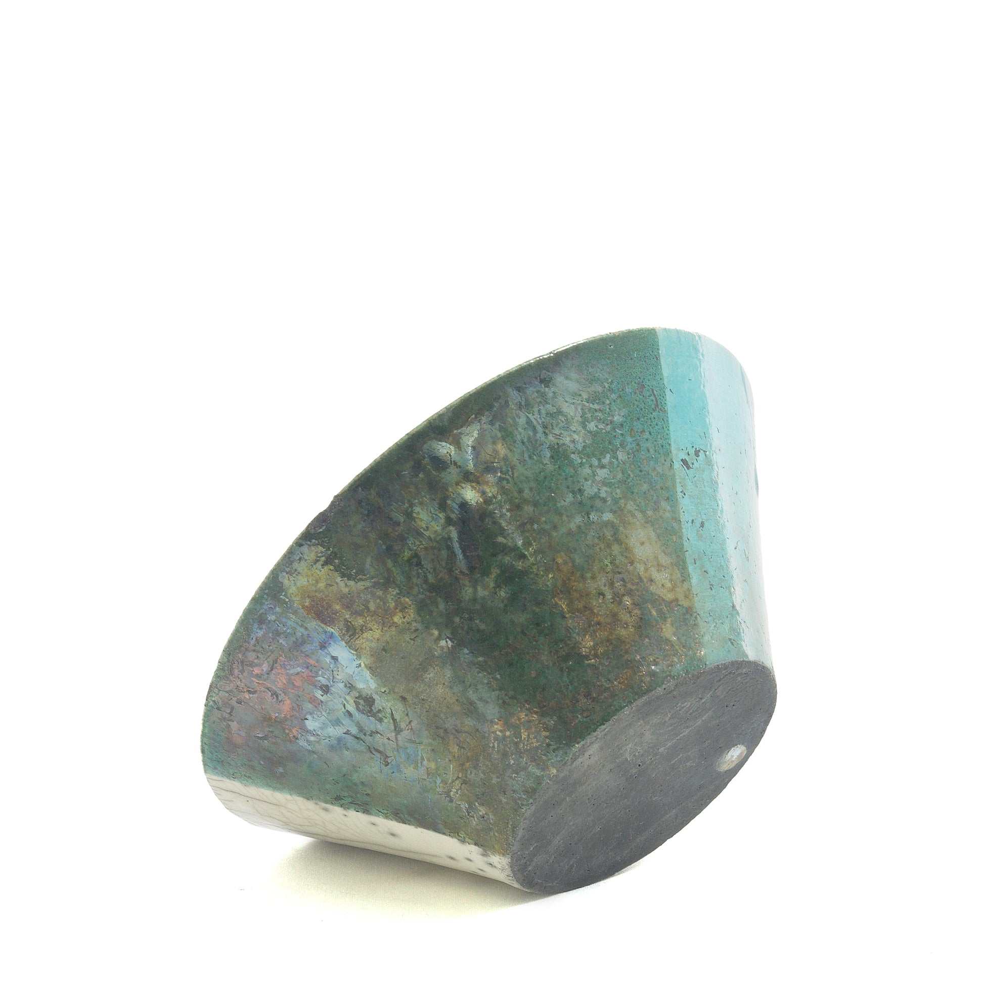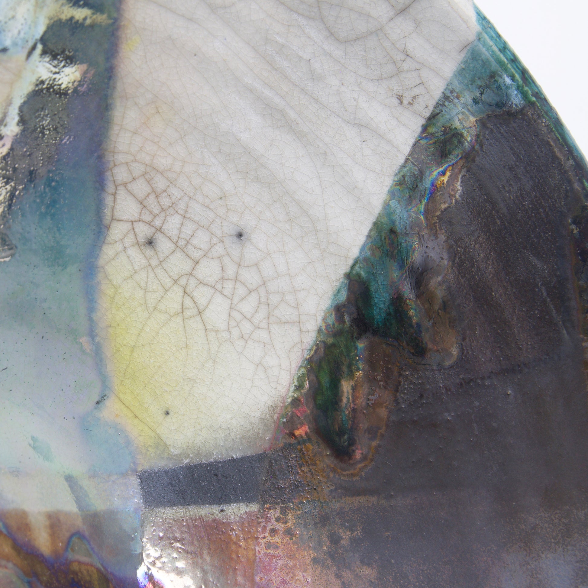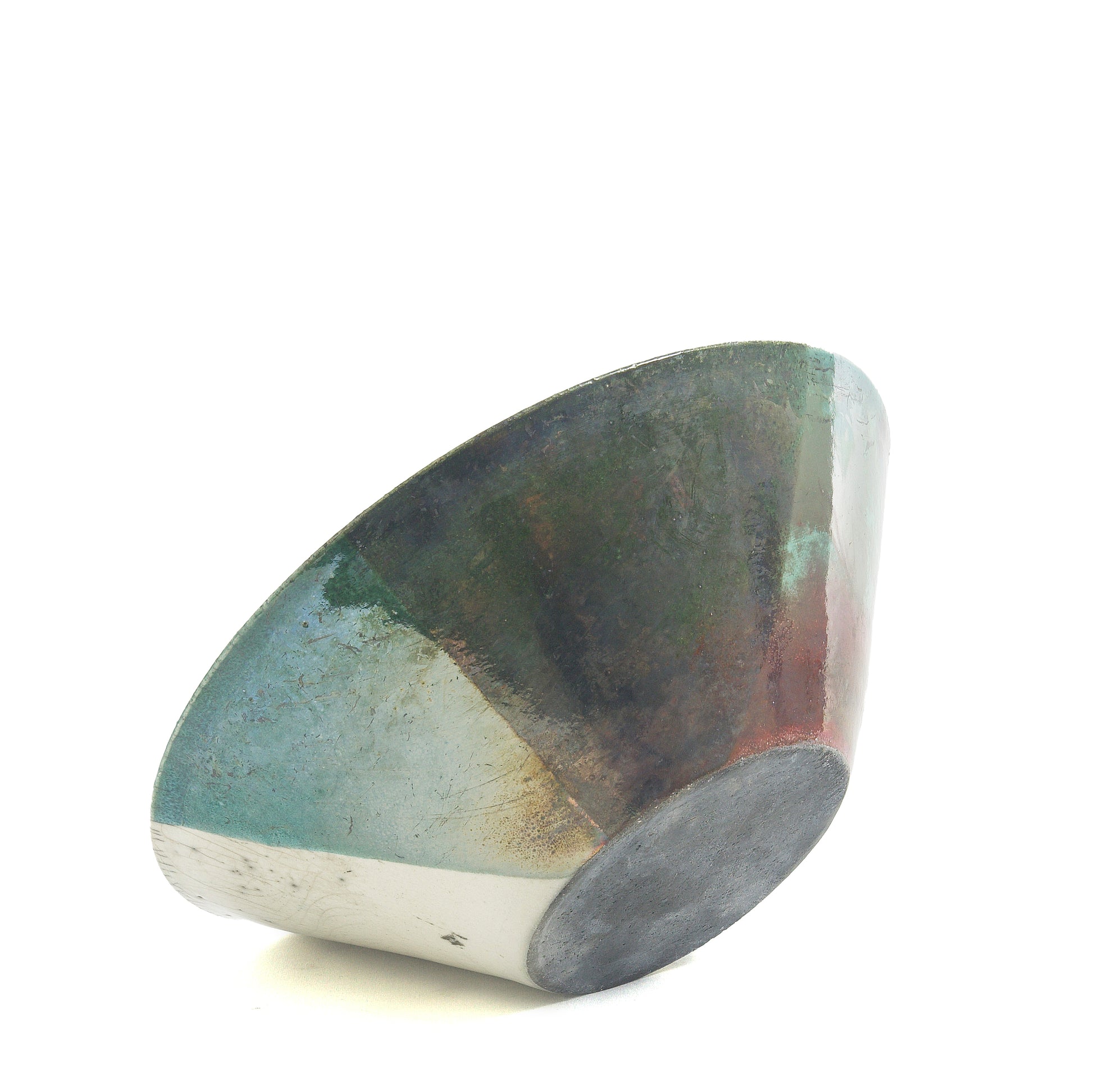 The rapid cooling of the Raku technique makes the final color result variable and may differ from the images.