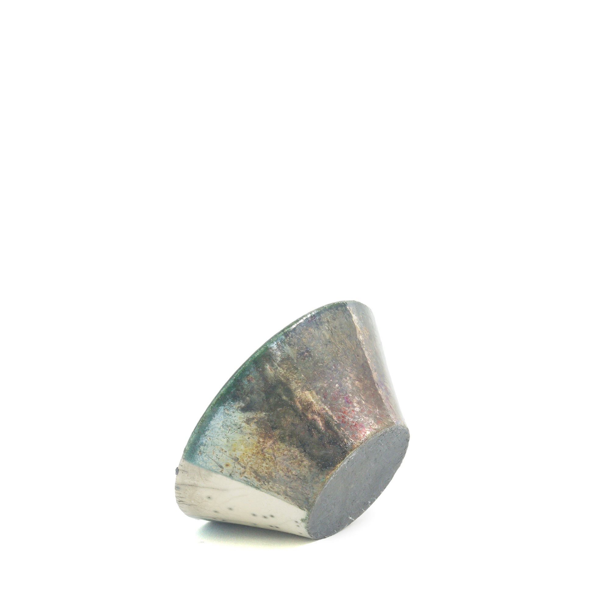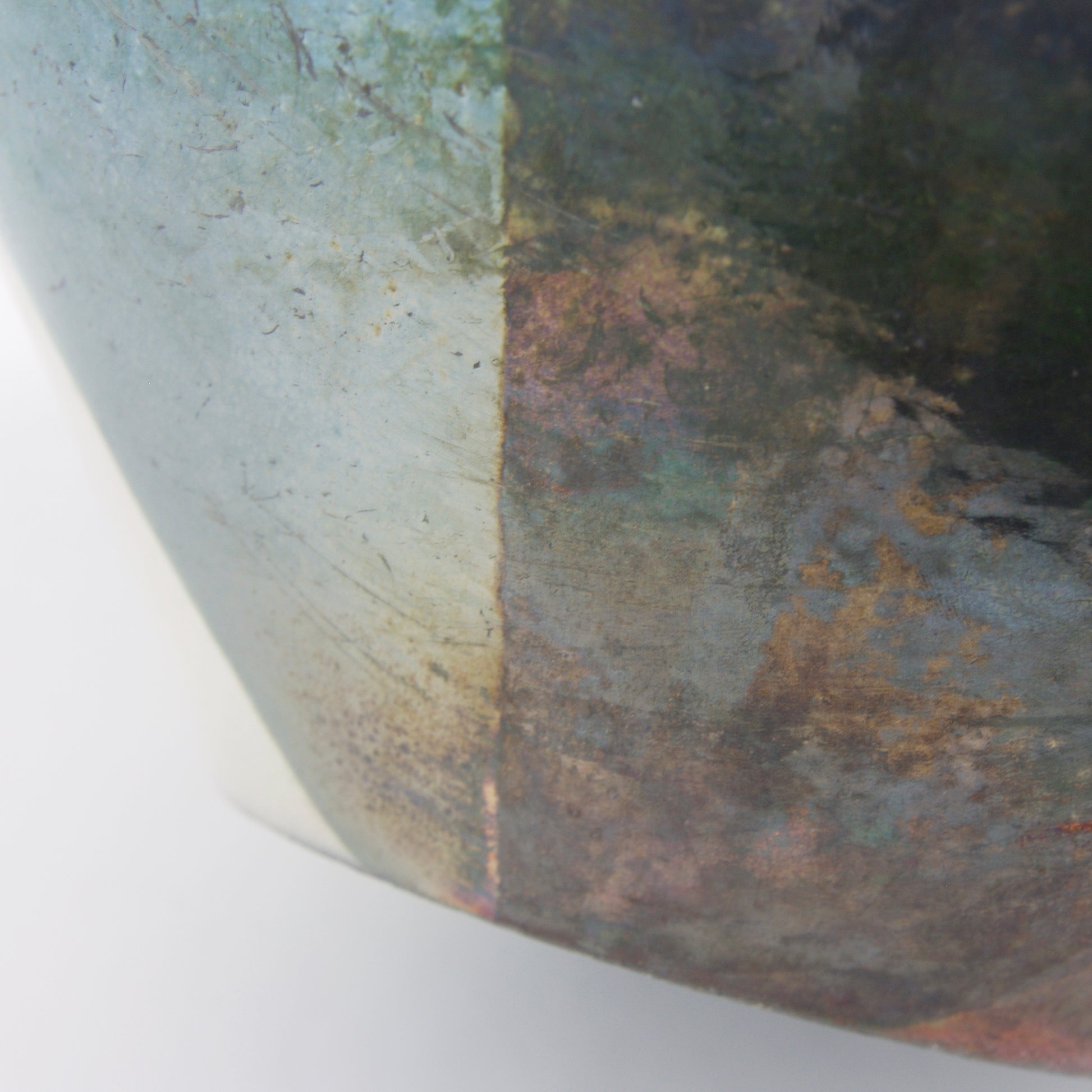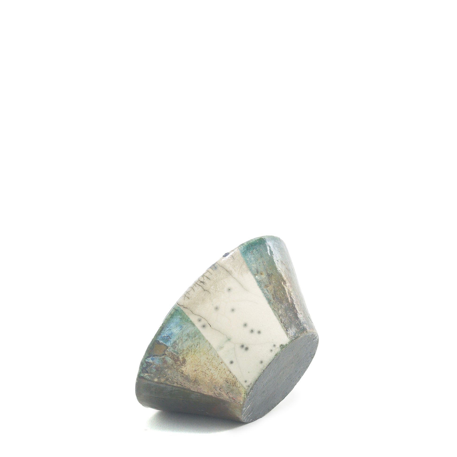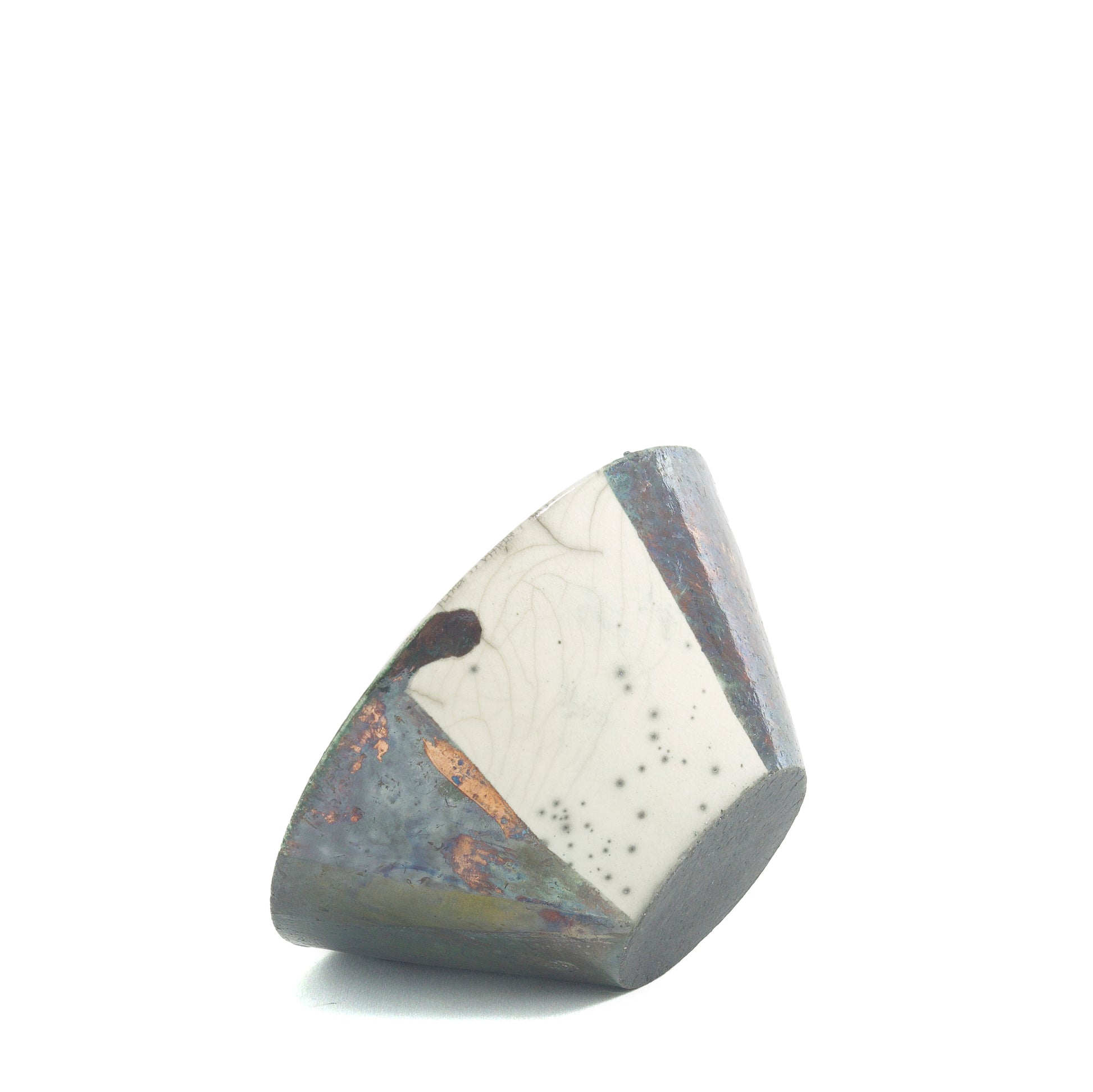 The rapid cooling of the Raku technique makes the final color result variable and may differ from the images.