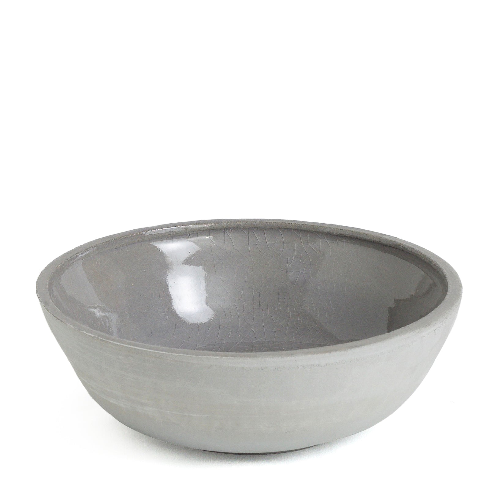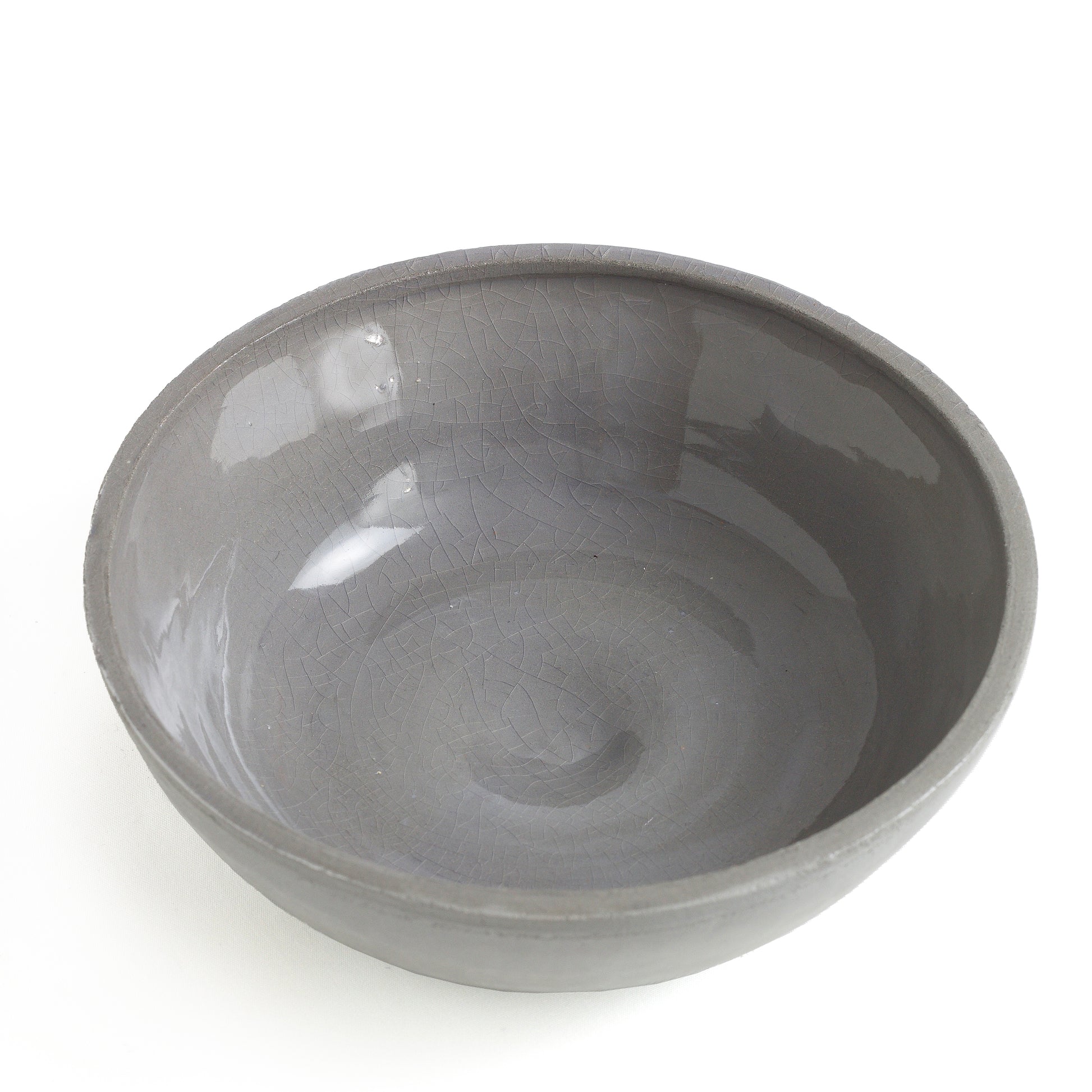 This minimalist bowl showcases the true beauty of natural ceramic material. Its simple and elegant shape is accentuated by the use of raku materials that create a distinctive fracture effect on the interior which is glazed with a shiny, glass-like finish that beautifully contrasts with the raw exterior. Its neutral grey color exudes a calming and serene aura, making it a perfect addition to any minimalist decor.