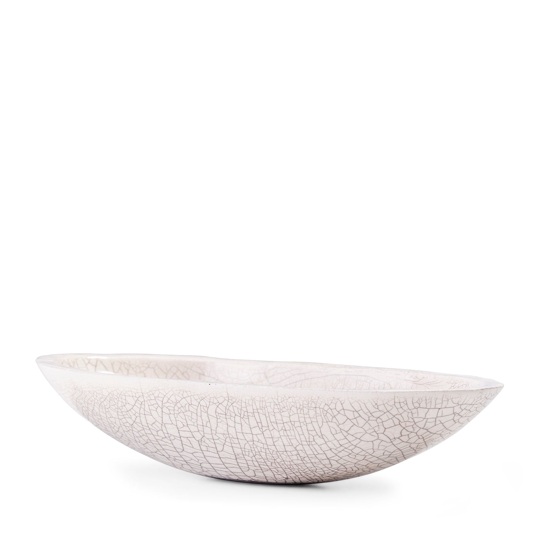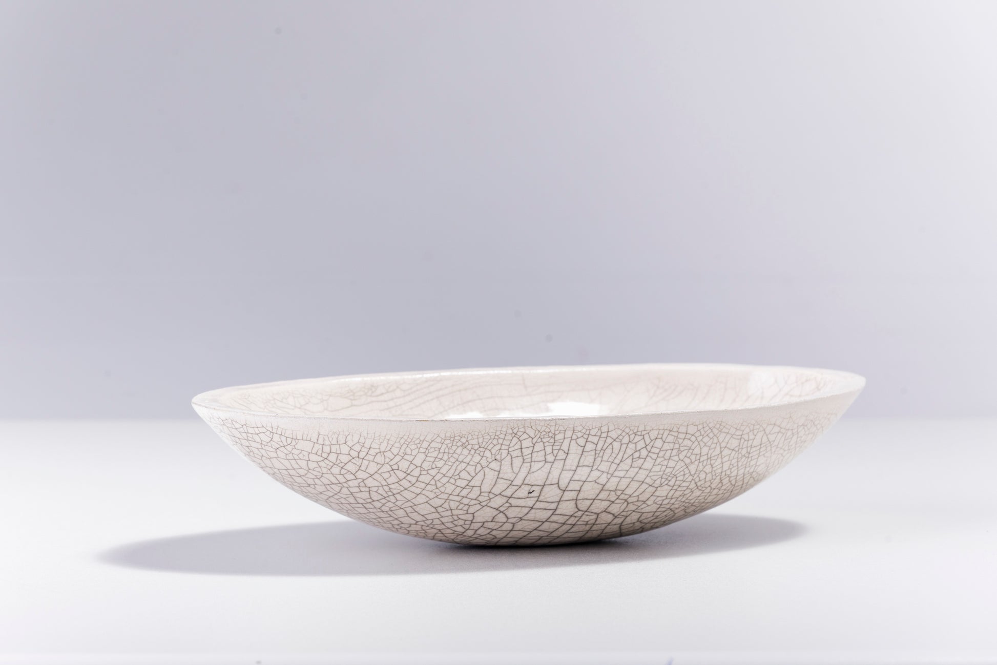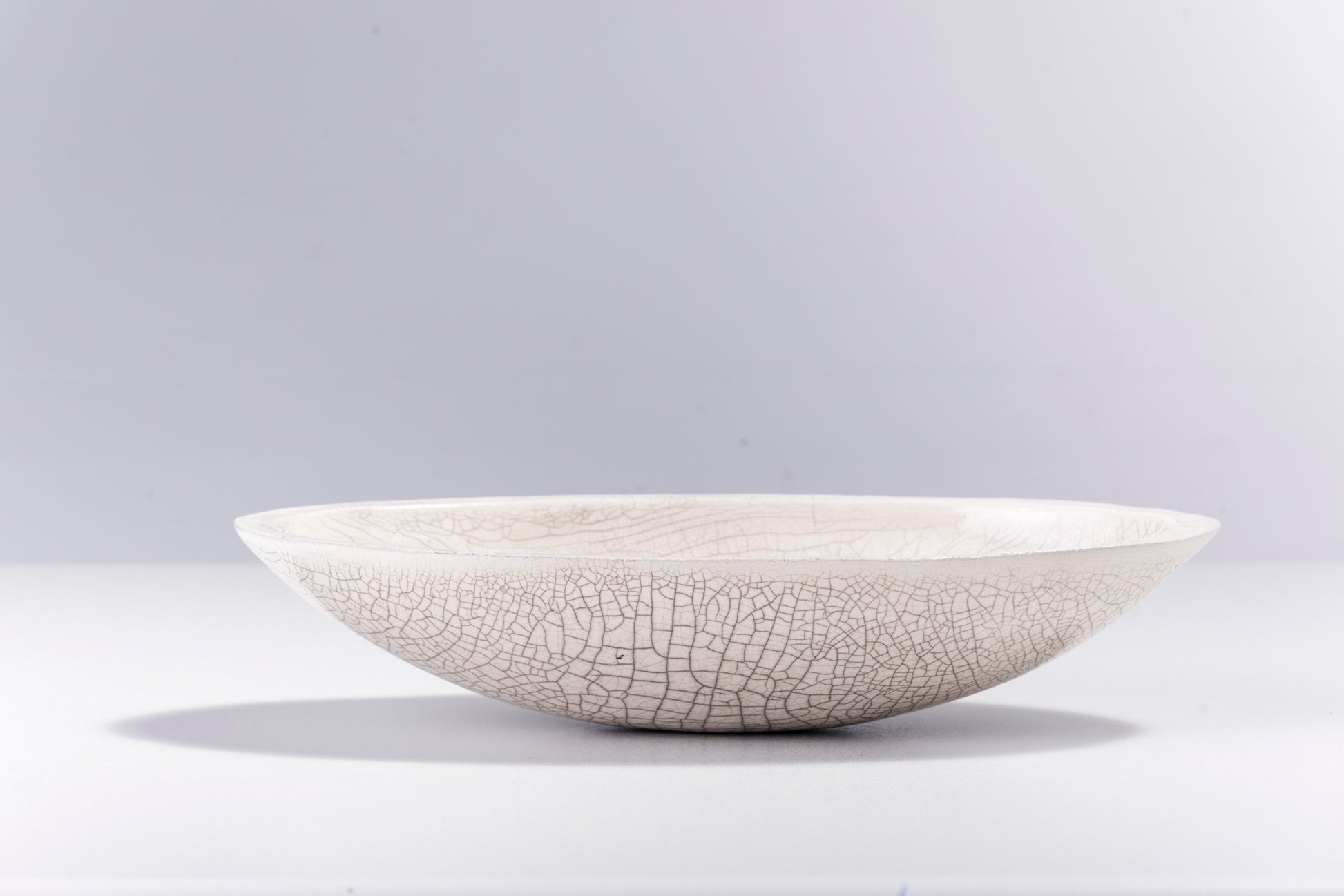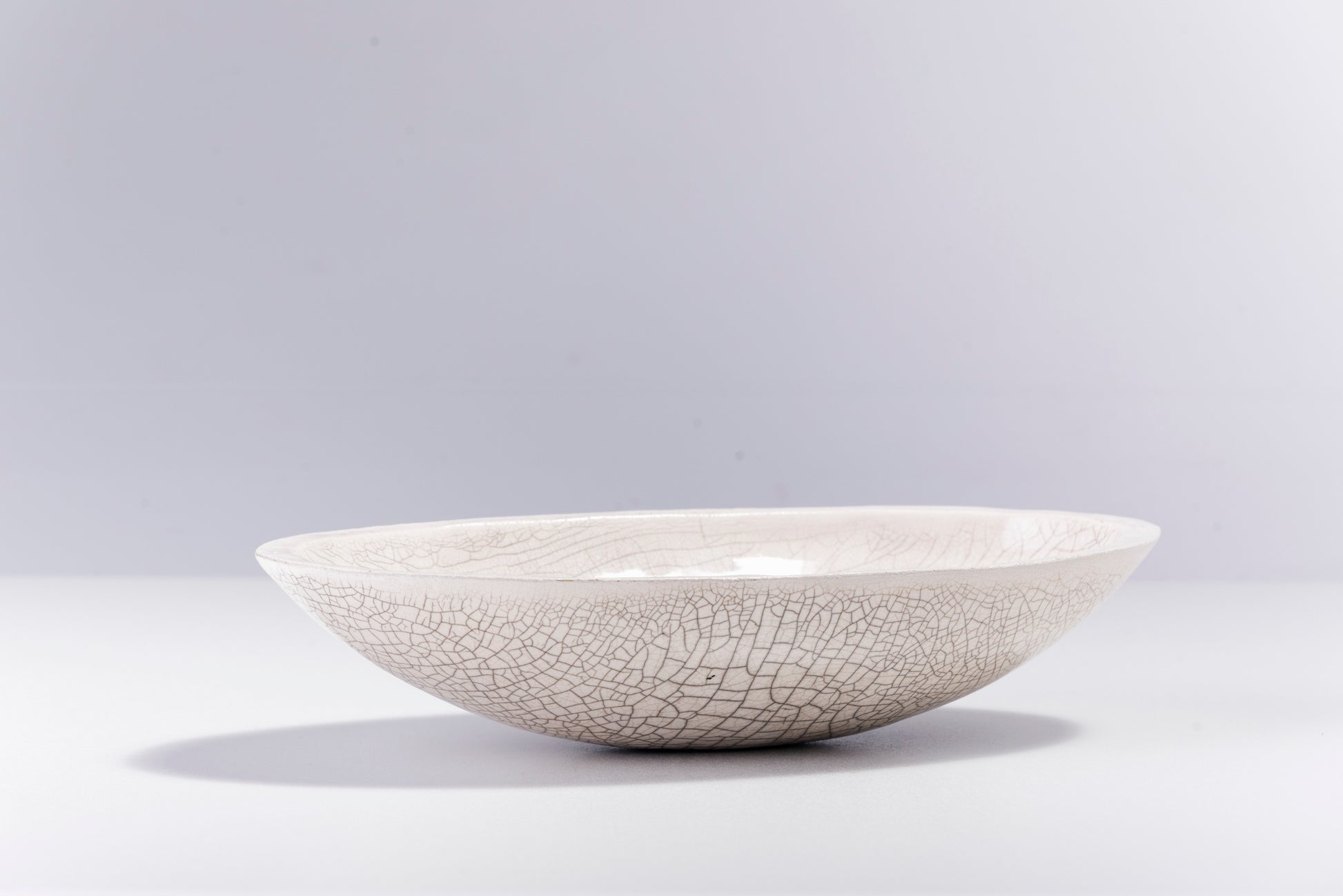Japanese Donburi L Bowl Raku Ceramic White Crakle