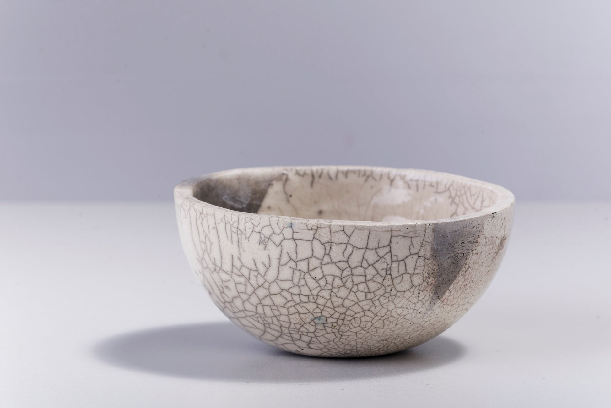 Japanese Minimalistic Fringe Chawan Bowl Raku Ceramics Crackle White