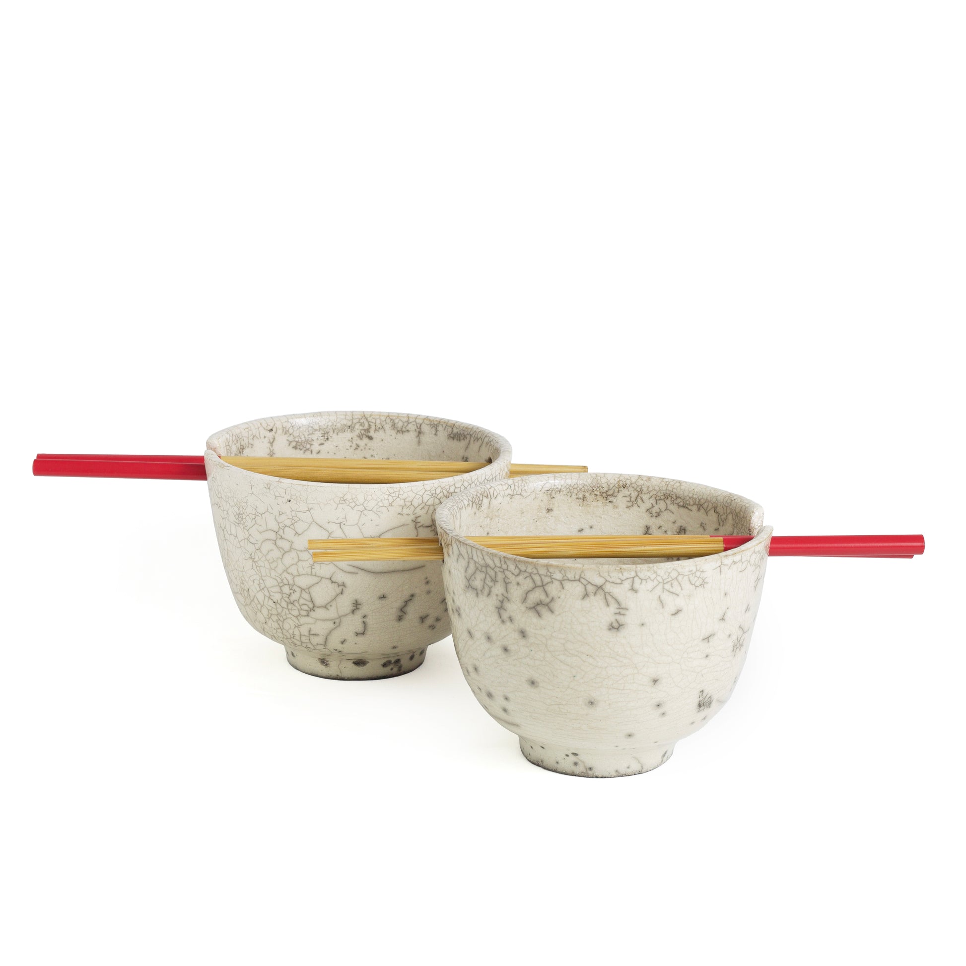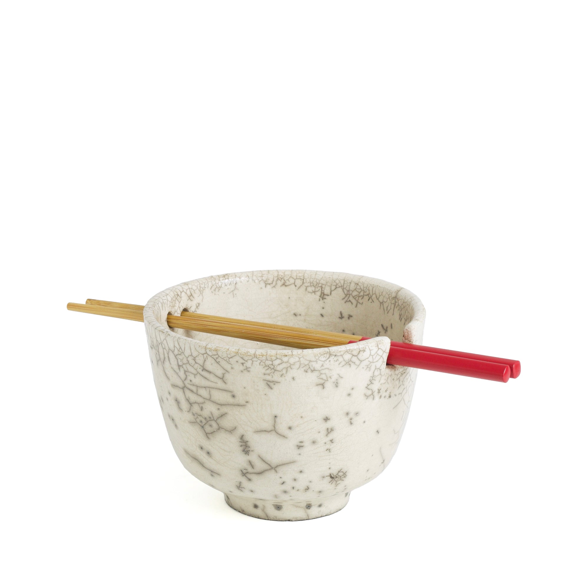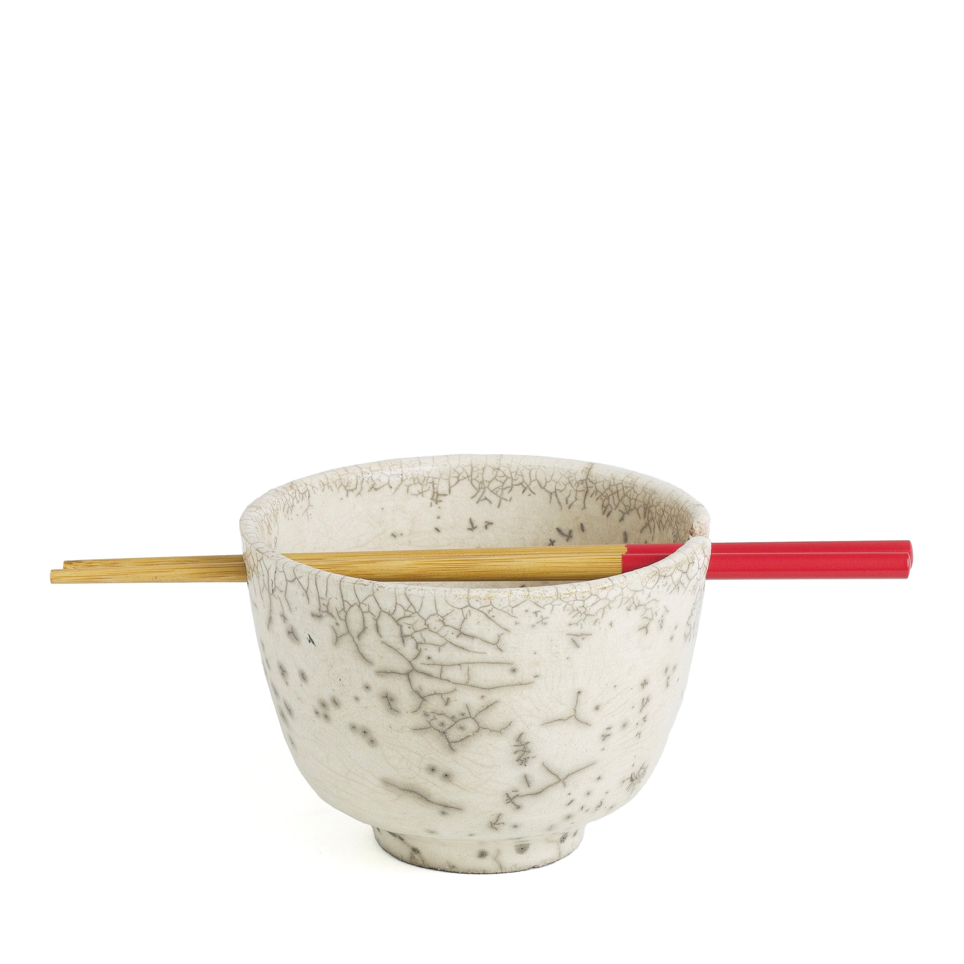 Enjoy your delicious ramen soup with a touch of artistry, served in these exquisite raku ramen bowls. Expertly handcrafted using ancient Japanese techniques, these bowls are adorned with a breathtaking crackle effect that covers their entire surface, making each piece a unique work of art. Their carefully designed shape features a built-in chopstick rest that allows for a comfortable and practical dining experience. Savor every bite while admiring the exquisite craftsmanship of these stunning ramen bowls.