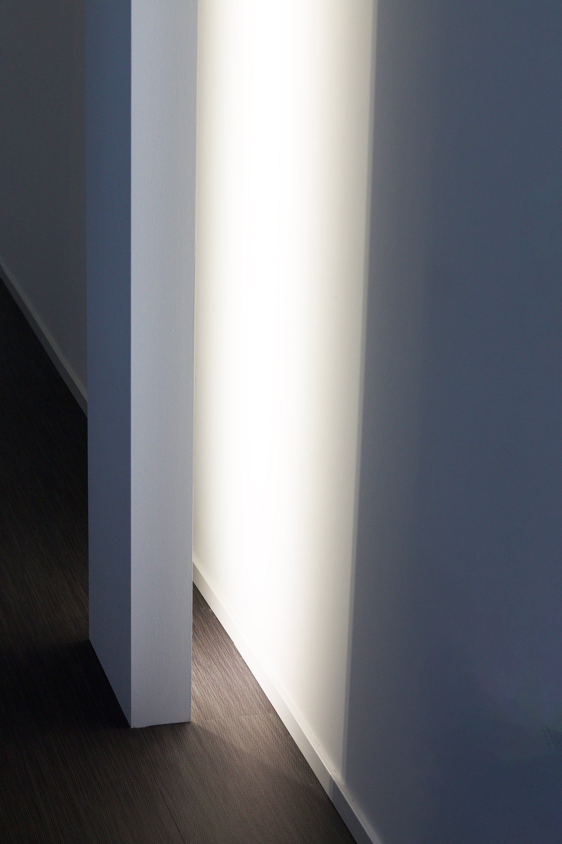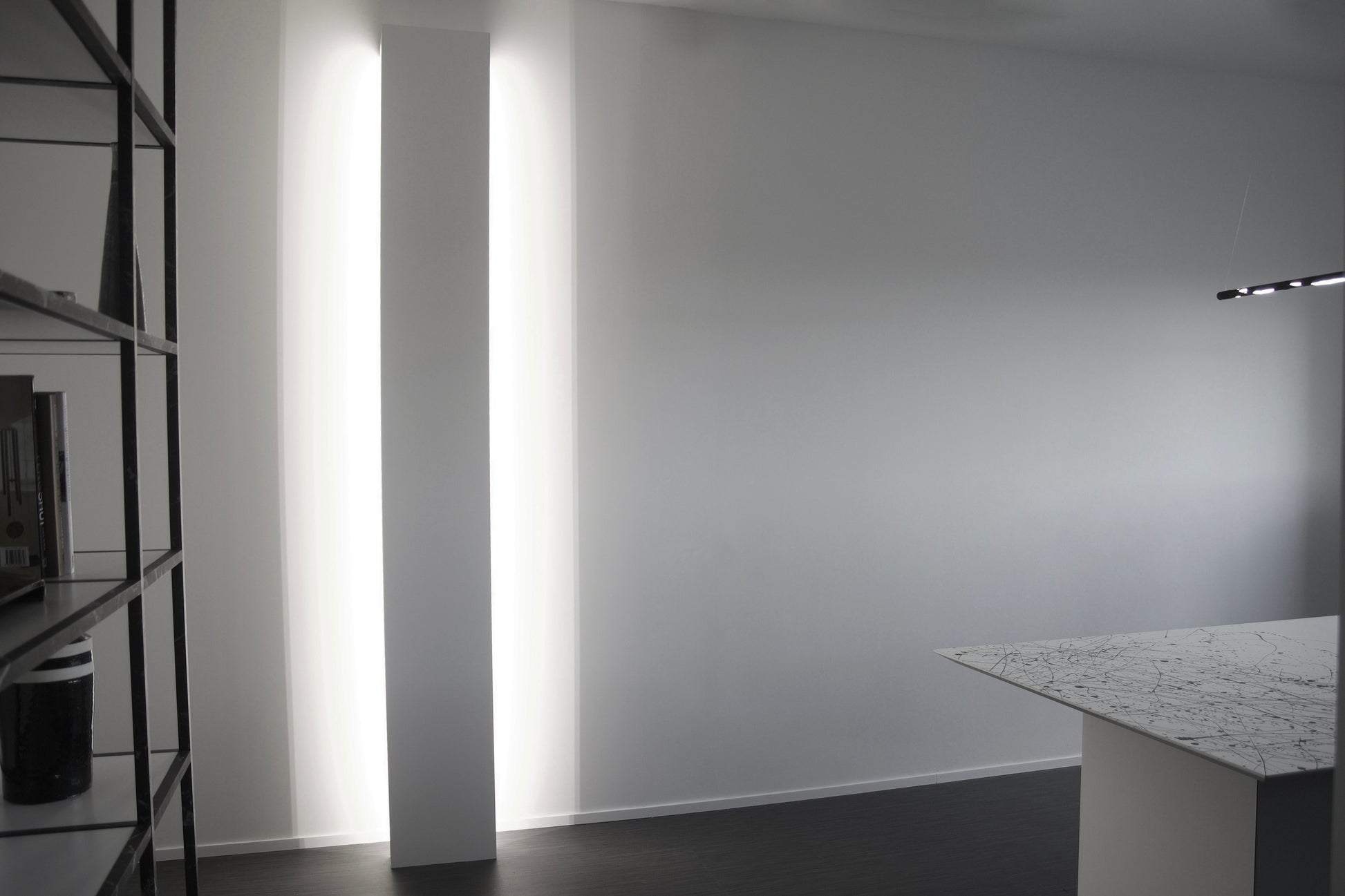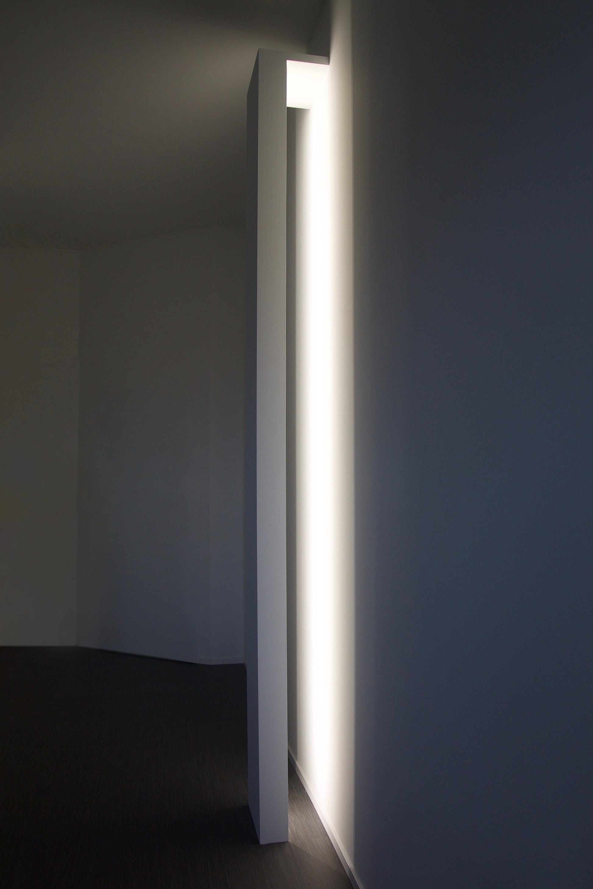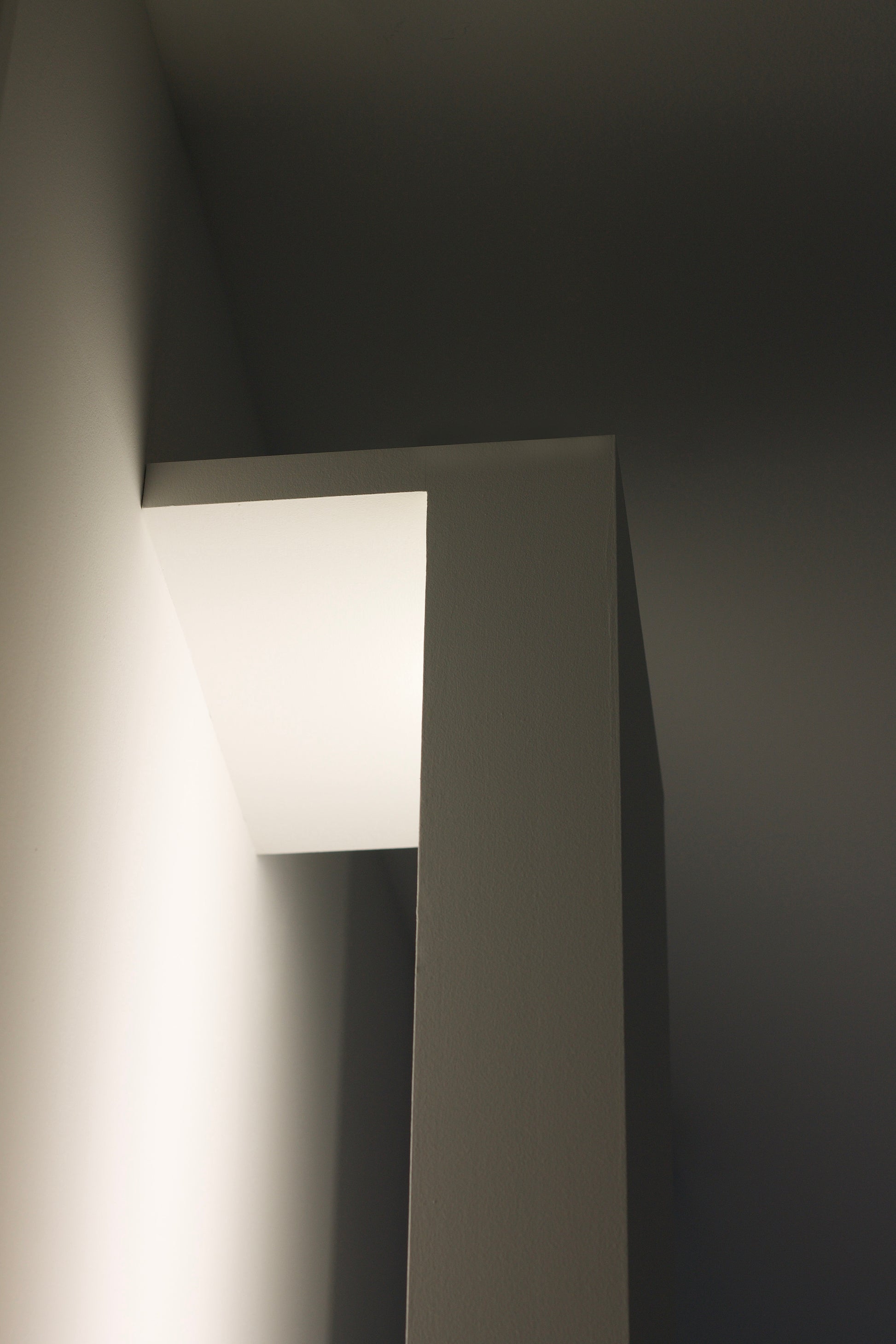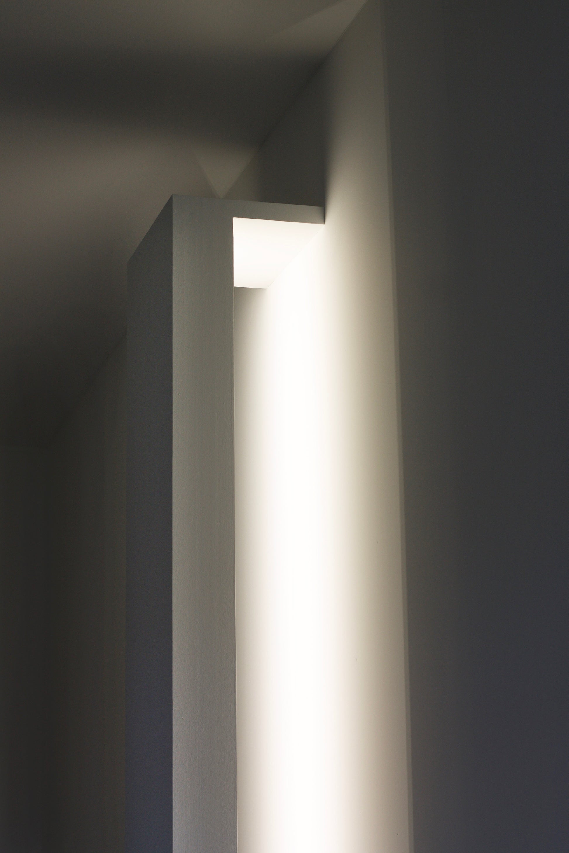 A unique design in its simplicity. Tall, stunning, impressive, capable of turning any corridor into a scenic passage or to create a sequence of depths and lights when used in sequence in a larger space. The LED lights will cast firm shadows and define the shape of this wall lamp from floor to ceiling with a game of geometrical shapes that is hard to pull the eyes away from. The essence of this lamp is the light itself. A pure light, so pristine that it should not be seen directly and LABYRINTH does a marvellous work spreading the light and concealing its origin. LABYRINTH works great in minimalist interiors using its lights and shadows to embellish the room rising from the floor.