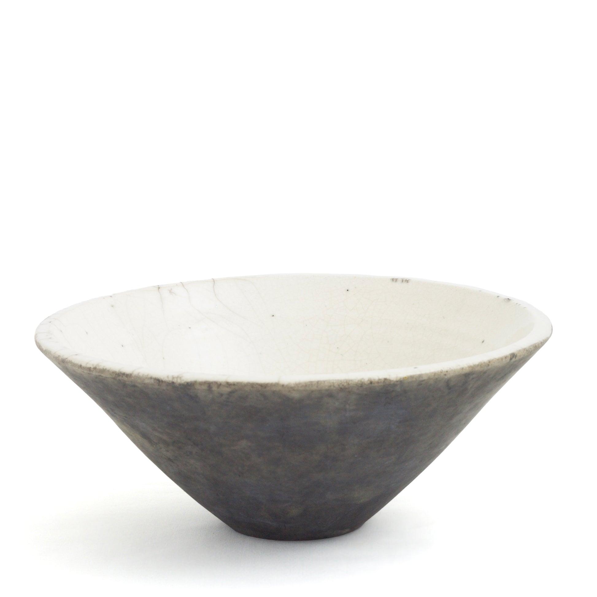 Japanese Modern Wu Set of 2 Bowls Raku Ceramics Crackle Black White